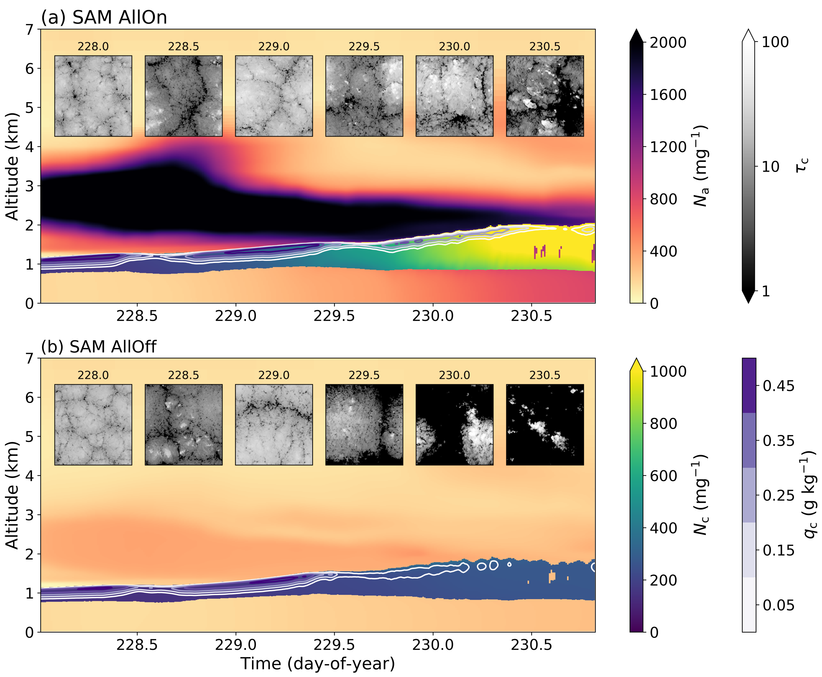 Our discovery that the large-scale circulation effects from smoke strongly affect cloud transitions shows the utility of modeling systems at multiple scales. Although high-resolution models can better capture cloud-scale motions, these large-scale environmental changes would have been impossible to capture in a high-resolution/small-domain model alone.